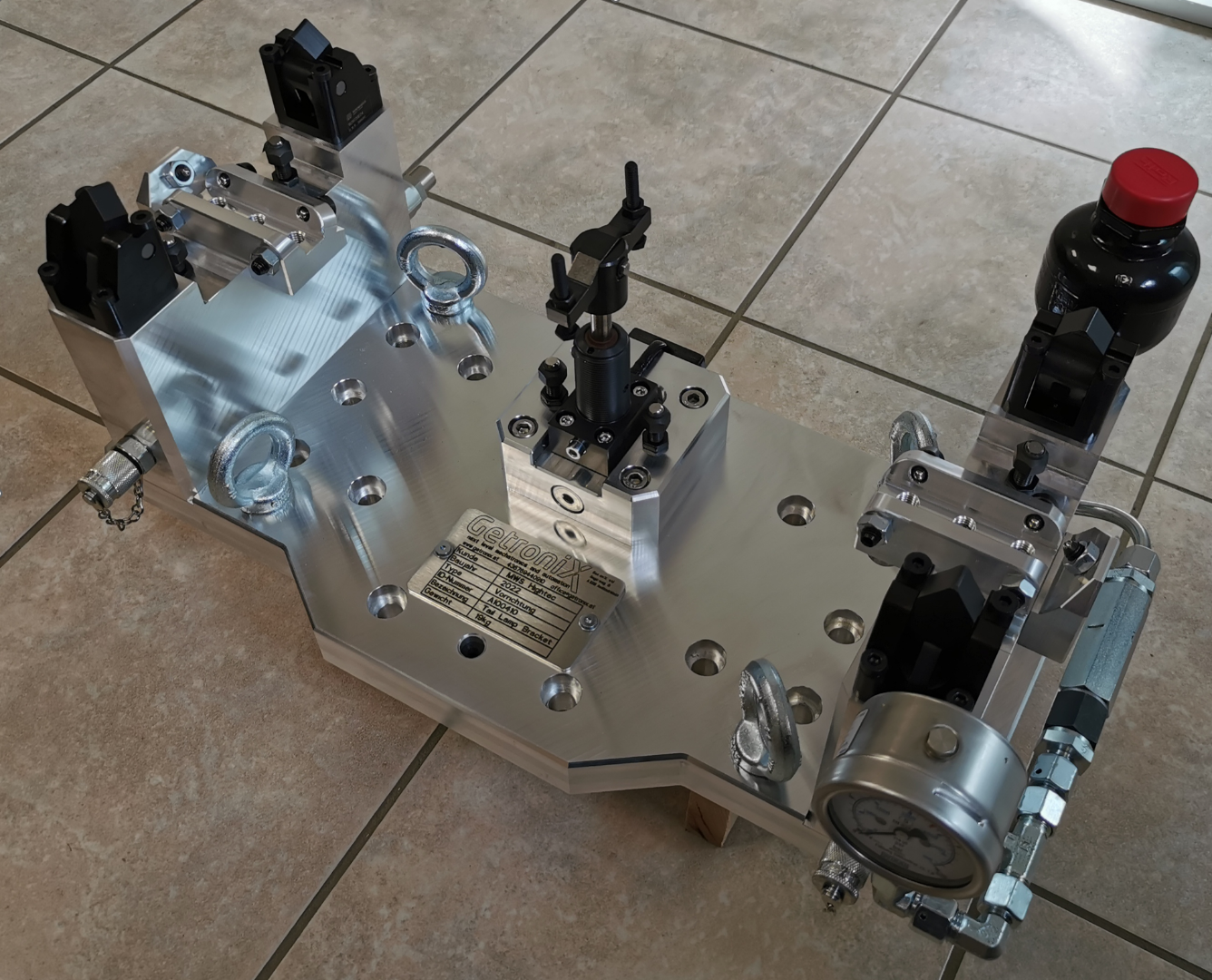 Die Herausforderung bei dieser Vorrichtung war die Vorgabe des Kunden, die spiegelgleichen Bauteile mit nur einer Aufspannung vollständig zu bearbeiten. Mithilfe des Einsatzes eines Schwenkspanners und einem durchdachten Ausrichtesystem der Rohteile konnten alle Anforderungen erfüllt werden. Somit steht einer wirtschaftlichen Serienfertigung nichts mehr im Weg.
