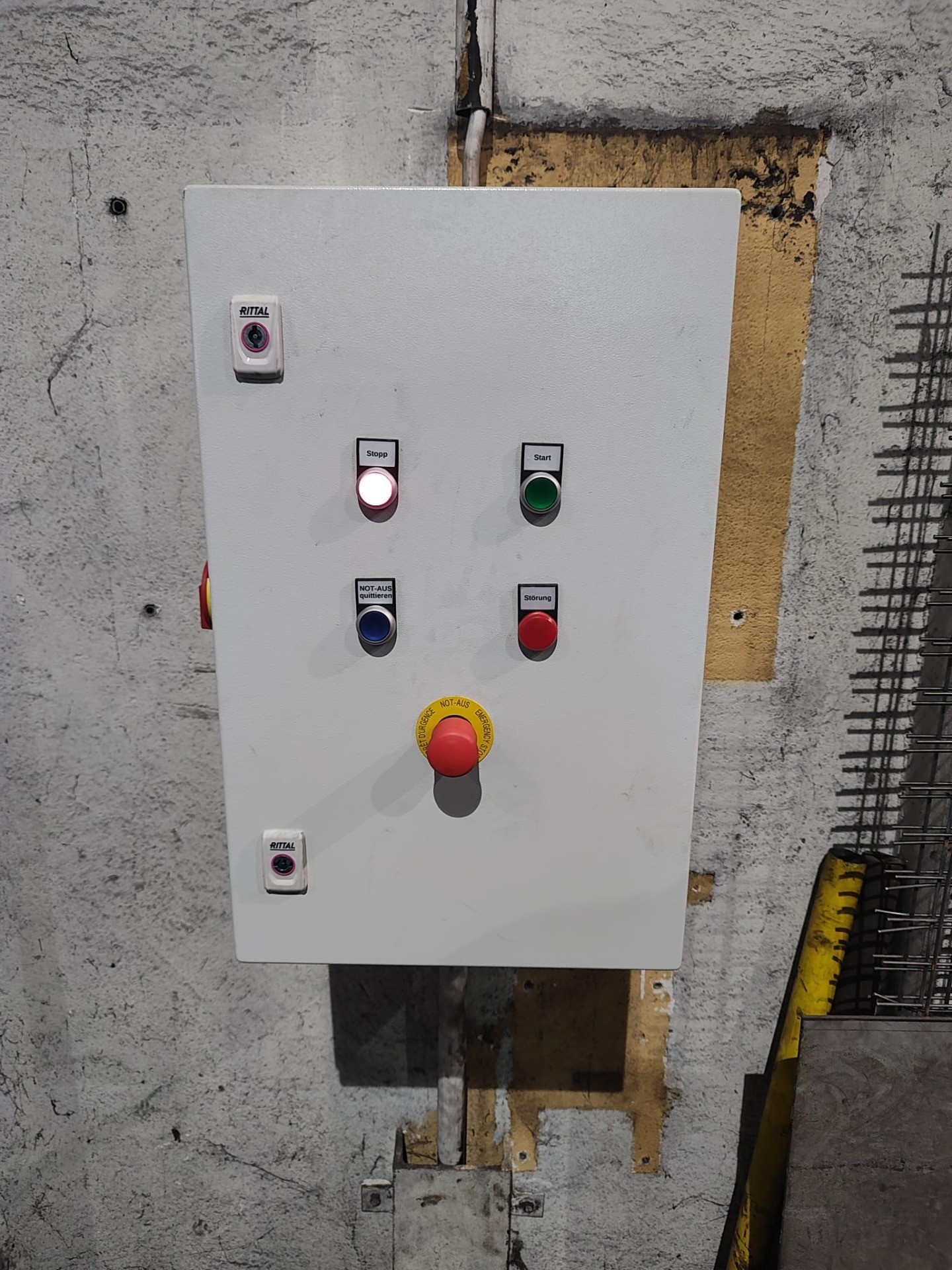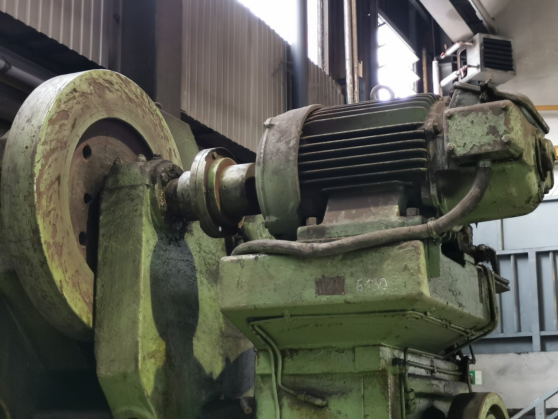 Die Hauptaufgabe der Schrottschere besteht im Ablängen von gewalzten Stangenmaterial im kalten Zustand. Obwohl die Schrottschere schon deutlich in die Jahre gekommen ist befinden sich die mechanischen Komponenten aufgrund der robusten Bauweise in einem einwandfreiem Zustand. Jedoch wurde ein Tausch des Elektromotors von 230V auf 400V Betriebsspannung aufgrund von Standardisierungsmaßnahmen notwendig. Neben der Erneuerung des Motors wurde auch der Schaltschrank und die nostalgisch an wirkende Kupplung mit deutlichen Gebrauchsspuren auf eine elastische Klauenkupplung umgebaut.