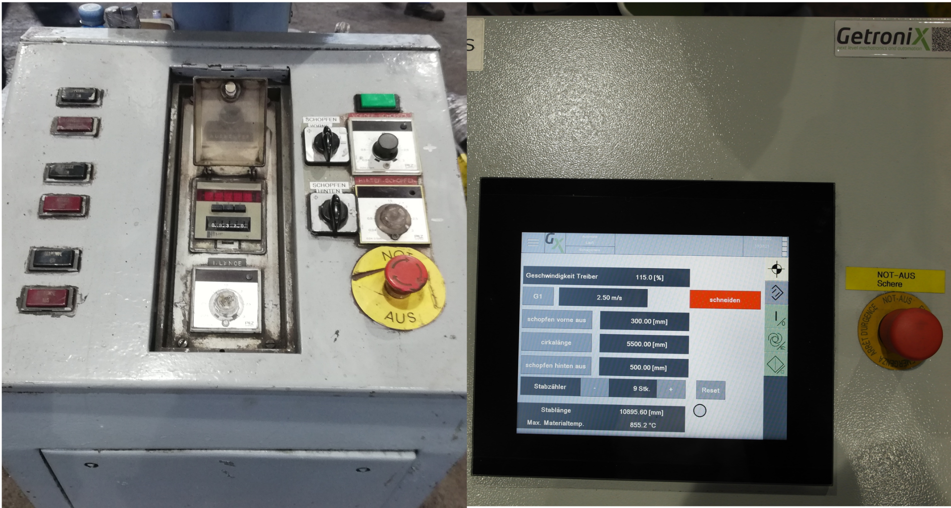 Bei diesem Projekt wurde im Auftrag des Profilherstellers Voestalpine Böhler Profil eine in die Jahre gekommene Schlagschere zum Ablängen von warmgewalzten Stabstählen und Profilen einem umfassenden Retrofit unterzogen. Dabei wurde die komplette Elektro-, Antriebs- und Steuerungstechnik der mechanisch gut erhaltenen Maschine erneuert. Den Zuschlag für das Modernisierungsprojekt erhielten wir u.a. aufgrund der angebotenen drahtlosen und daher mobilen HMI-Lösung mit Safetyfunktionen an Bord. Konkret kommt dafür das Wlan-Bedienpanel »HGW 1033« mit Not-Halt, Zustimmtaster und Schlüsselschalter des Salzburger Automatisierungsherstellers Sigmatek zum Einsatz, das im Verbund mit der »S-Dias«-Steuerung und dem Visualisierungssystem »Lasal Screen« die rundum modernisierte Schlagschere auf eine neue Produktivitätsebene hievt. Den Mitarbeitern vor Ort bringt das handliche Multitouchpanel eine zuvor nie dagewesene und vor allem SIL3-zertifizierte Bewegungsfreiheit beim Bedienen der Schlagschere – und im Gesamtpaket mit der neuen Automatisierungstechnik noch einige weitere praktische Vorteile