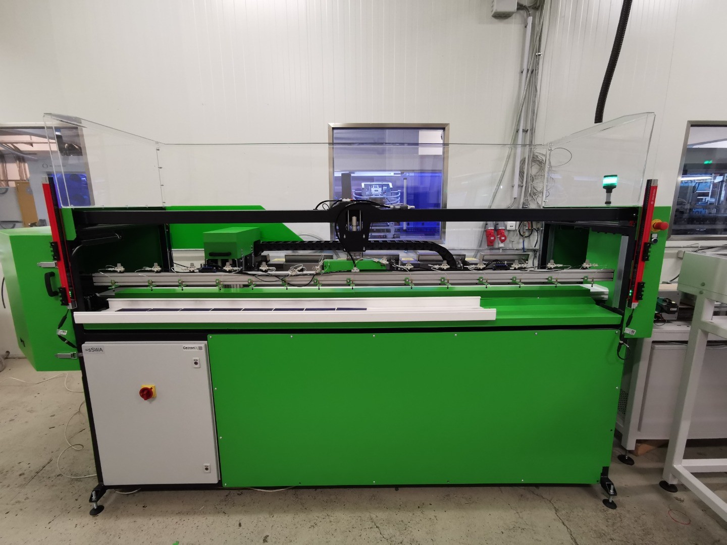 Die Nachfrage nach PV-Elementen boomt und speziell auch die Nachfrage nach Sondermodulen mit hohen optischen Ansprüchen wie zum Beispiel für Fassaden. Um diese hohen optischen Ansprüche zu gewährleisten müssen die Lötbahnen der einzelnen PV-Elemente nach dem verlöten mit einer speziellen Farbe geschwärzt werden.