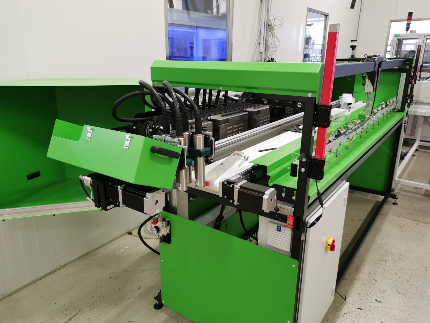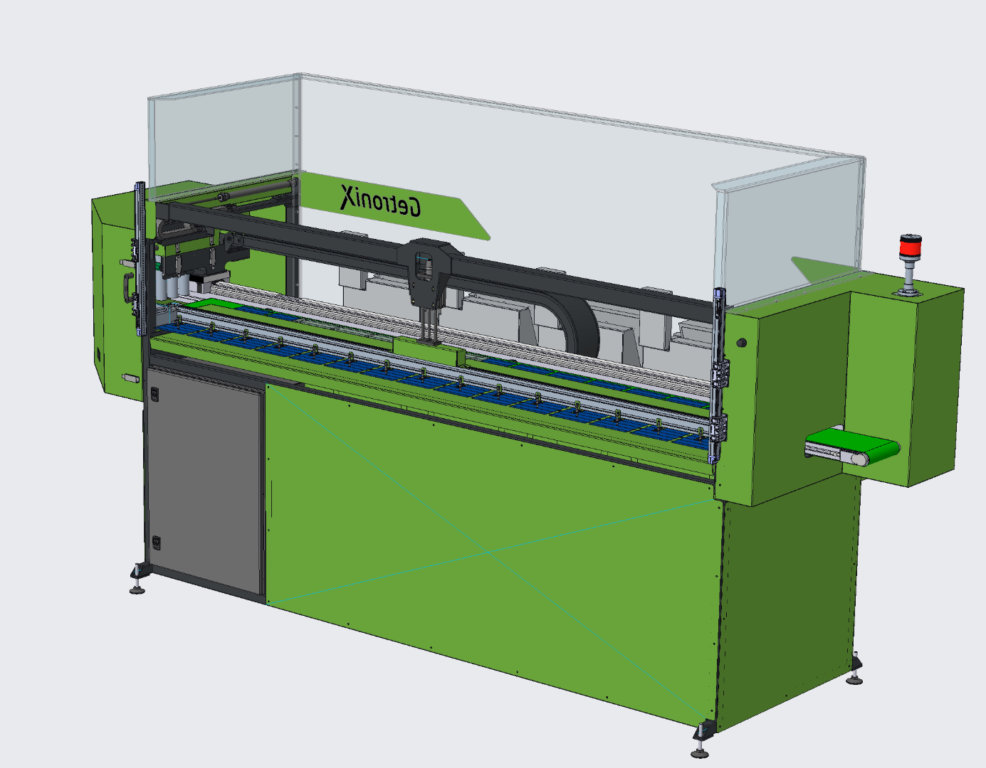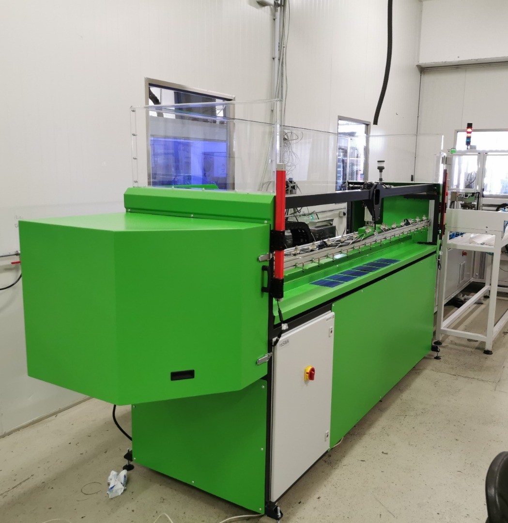 Die von uns entwickelte Schwärzungsanlage erfüllt genau diese Aufgabe. Dabei wird der PV-String mit variabler Länge mithilfe eines Riemenförderers in die Anlage gefördert und mit einem Ausrichtesystem auf eine Referenzkante ausgerichtet. Dies ist notwendig um die hohen Anforderungen an die Genauigkeit beim Druckprozess zu erreichen. Die Anlage arbeitet nach Eingabe der Produktionsparameter vollkommen selbständig. Mithilfe großzügiger Wartungsklappen ist eine unkomplizierte und rasche Reinigung der Druckköpfe möglich. Wie bei allen unseren Maschinen, Anlagen u Vorrichtungen stellen wir an uns den höchsten Anspruch was Arbeitnehmerschutz und Maschinensicherheit betrifft.