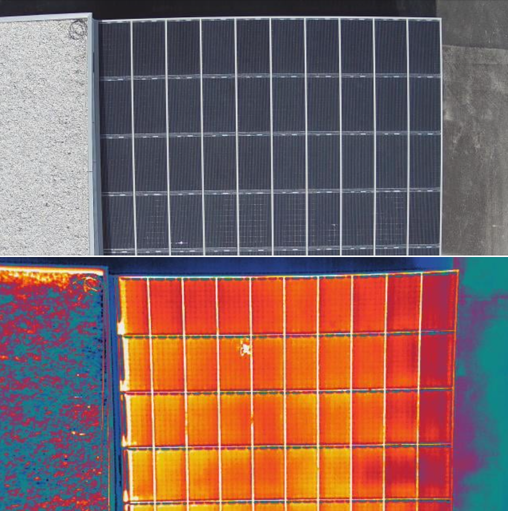 Mit nur einem Überflug mit unserer hauseigenen Drohne inkl. Wärmebildkamera sind wir in der Lage blitzschnell und kostengünstig eine PV-Anlage zu überprüfen und etwaige Fehler genau zu detektieren. Schwachstellen wie defekte Klemmstellen, gebrochene Zellen etc. können so rasch festgestellt werden. Ein aufwendiges durchmessen jedes einzelnes PV-Moduls gehört somit der Vergangenheit an.